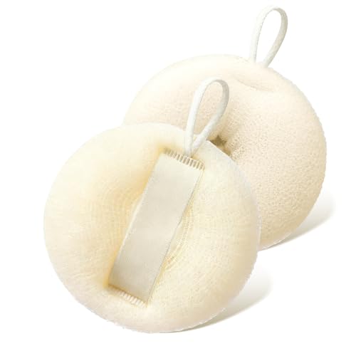 2 PCS Loofah Shower Puff for Women, Men: 2 in 1 Exfoliating Body Scrubber, Bath
