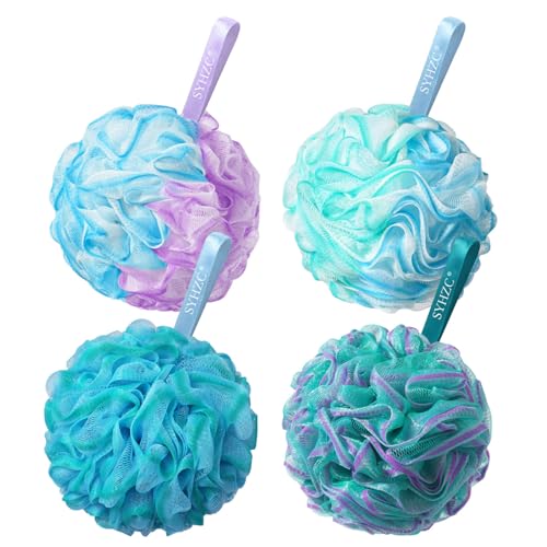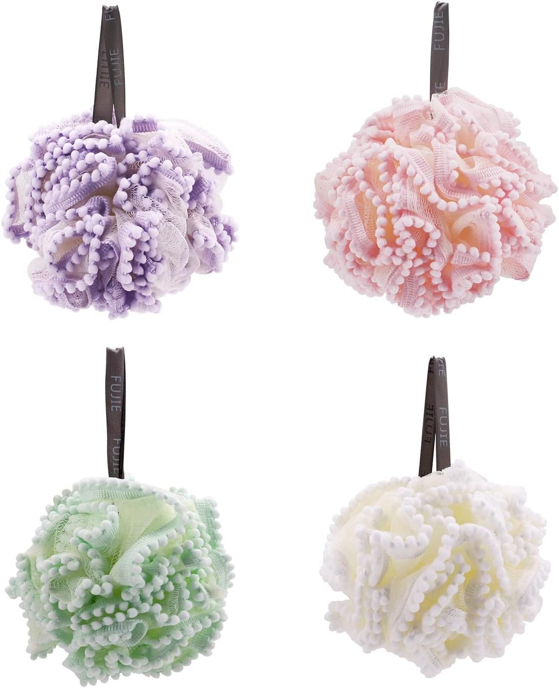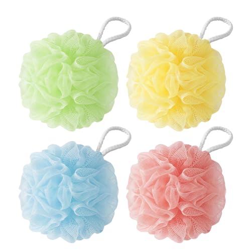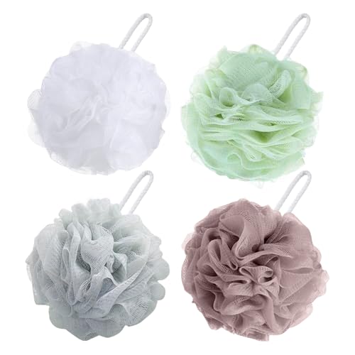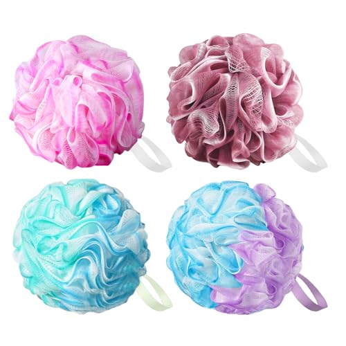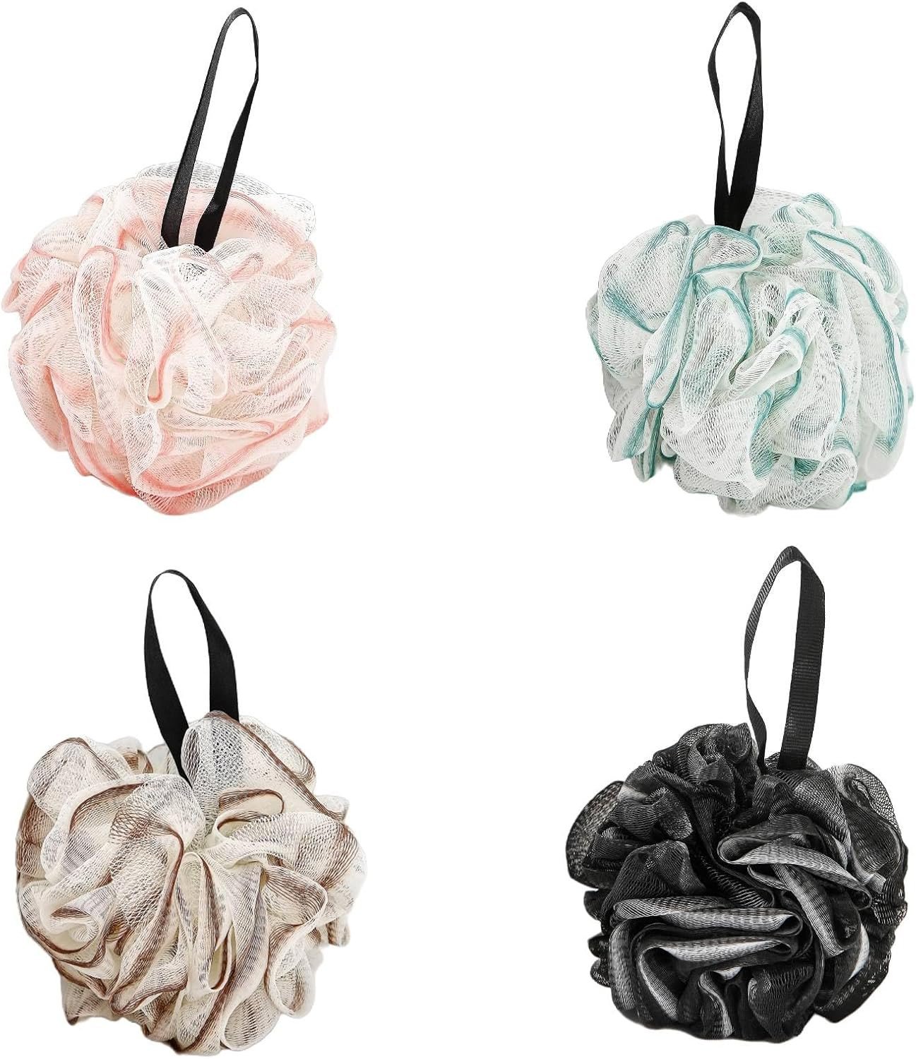 Shower Loofahs,Pack of 4 Shower Puff Bath Sponge,Shower Puff for Women and Men,