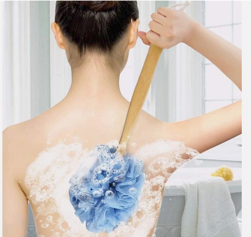 Long Handle Bath Brush Soft Mesh Sponge Back Scrubber Body Puff Shower Loofah