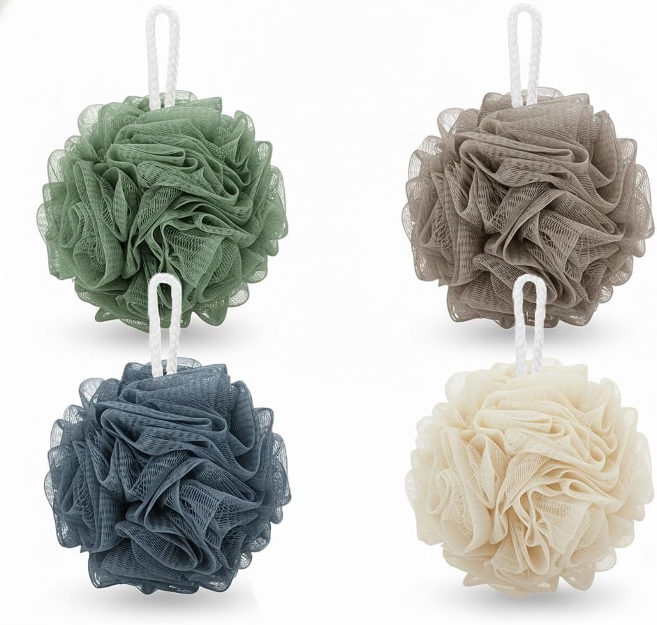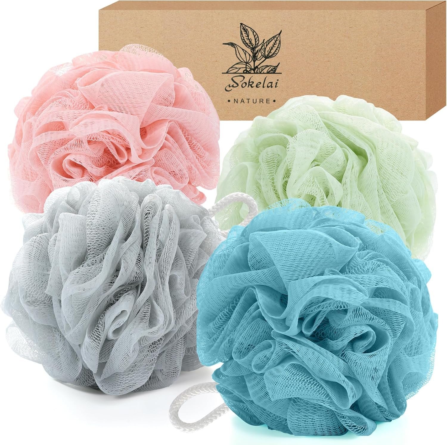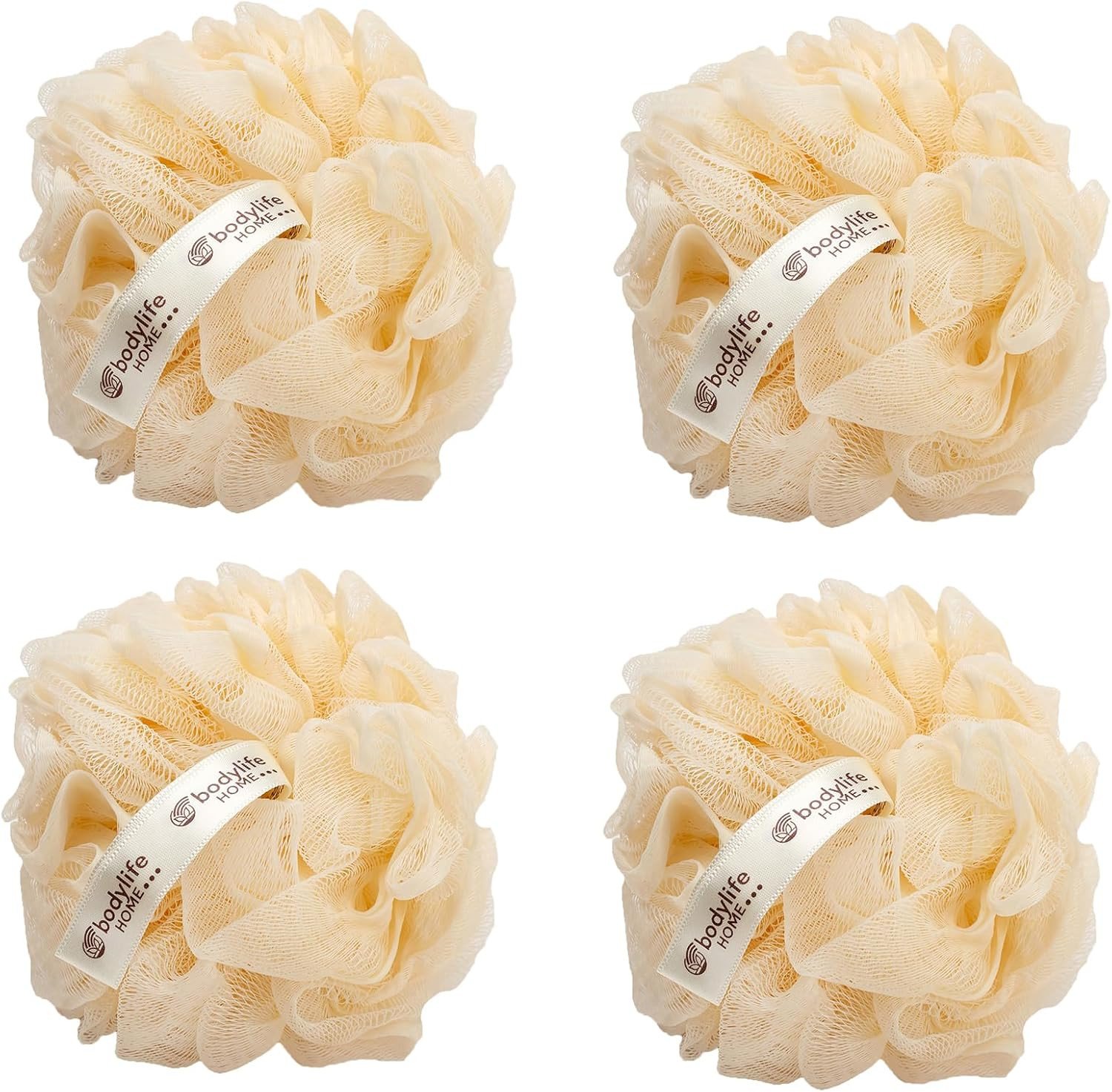 Shower Puff 4-Pack, 60G Premium Bath Sponge for Women, Men & Kids - Exfoliating