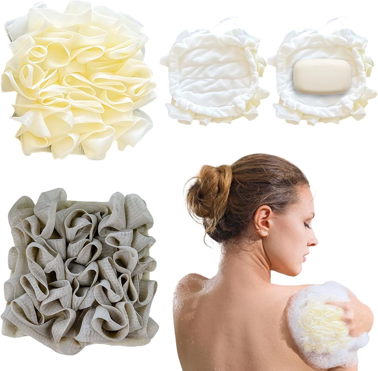 3-Piece Set Large Shower Puff, Bath Scrunchies and Wash Sponges for Body, 3-Piec