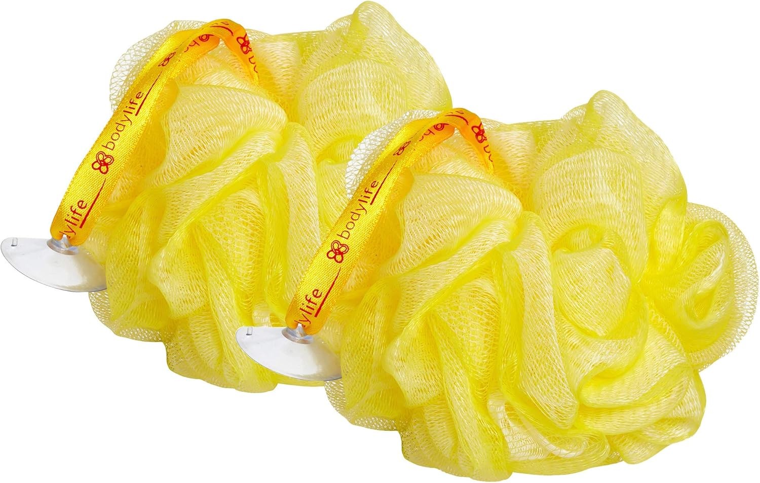 2Pcs Exfoliating Bath Loofah, Shower Puff for Women and Men, Yellow Soft Loofah Shower Scrunchie for Gentle and Non-Irritating, Deep Cleanses to Promote Smoother Skin, Suitable for All Skin Types