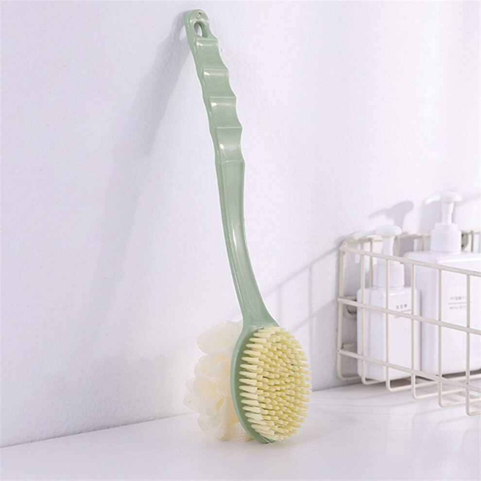 Bath Brush with Long Handle Soft Bristles and Puff, Green Shower Back Scrubber with Hanging Loop
