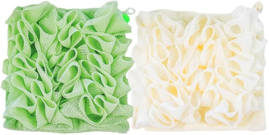 2 Pcs 2-in-1 Bath Sponge Shower Scrubber Loofah Shower Puff All-Gender Shower L