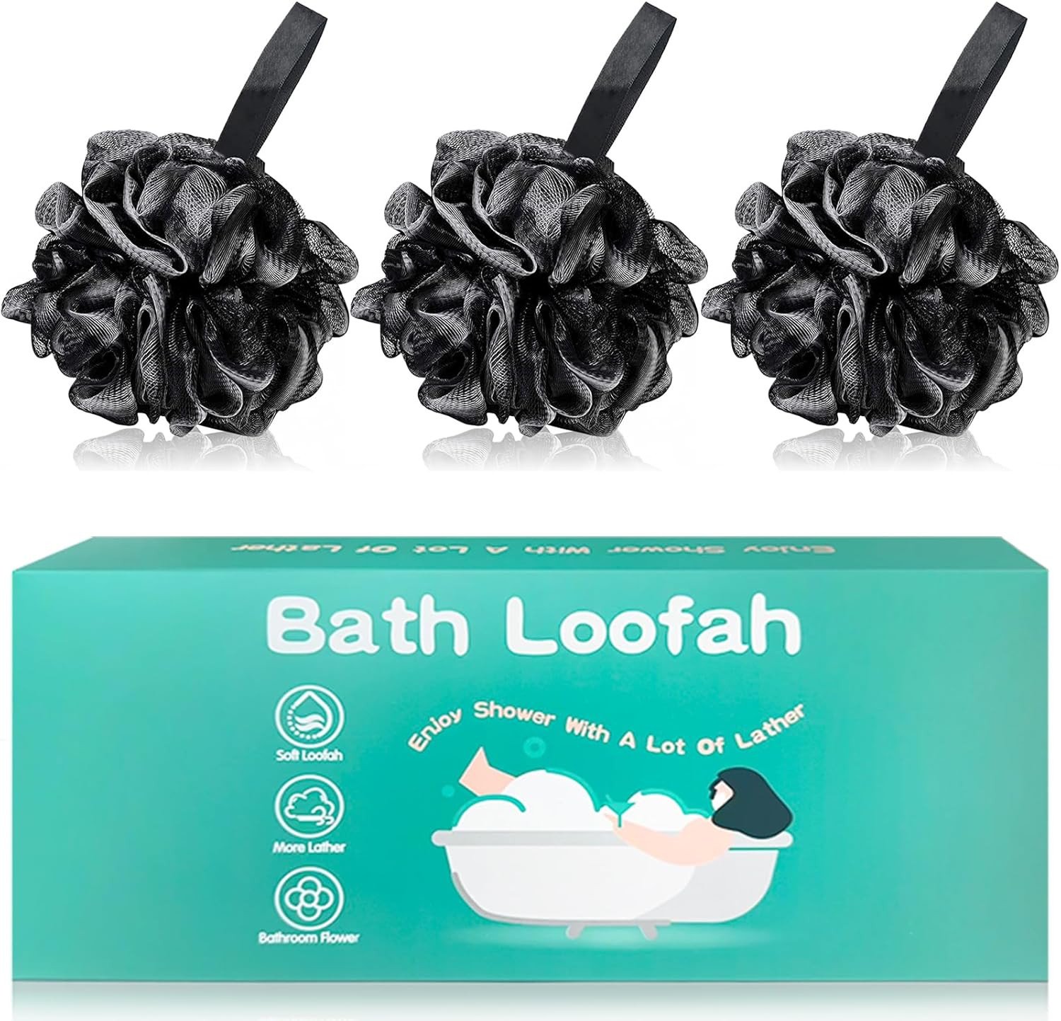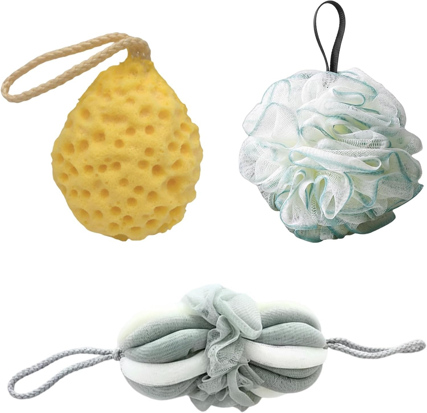 Amazerbst loofah,Shower Puff for Women and Men, Soft Body Scrubber Bath Sponge Set of 3