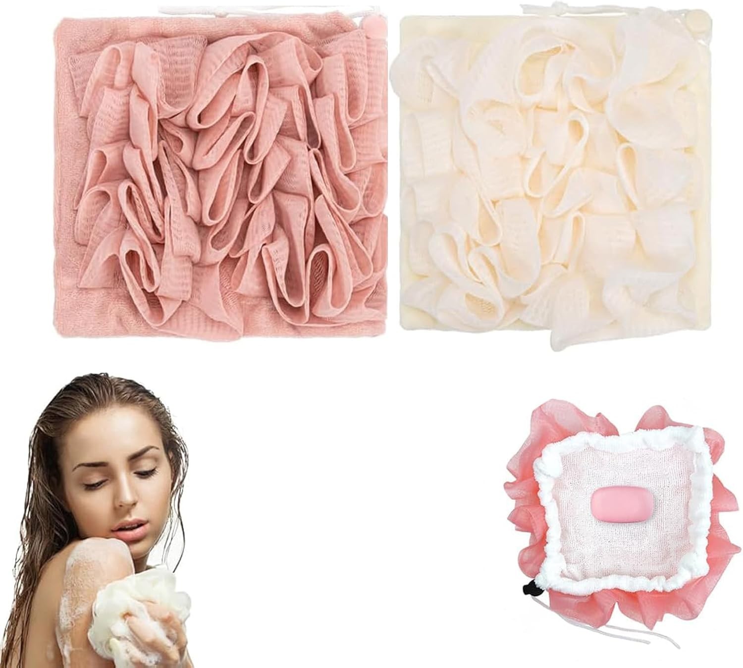 2PCS 2 in 1 Shower Loofah, Portable Shower Puffs for Body, Body Puff Shower, Ba