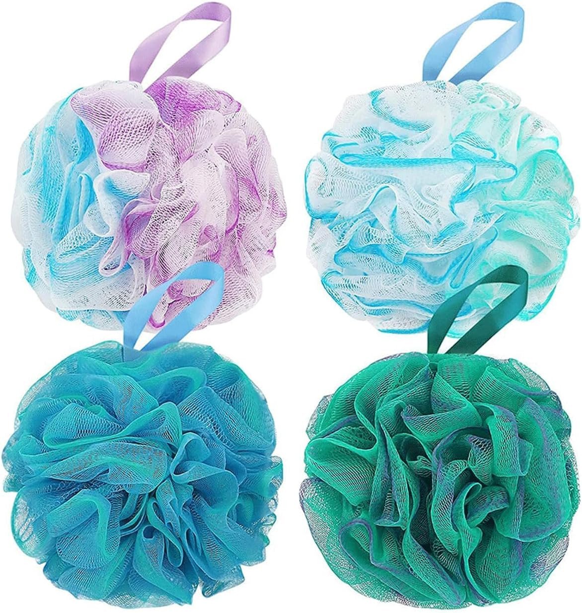 4Pcs Loofah Shower Puff,Ultra Soft Mesh Bath Sponges for Adults, Exfoliating Bat