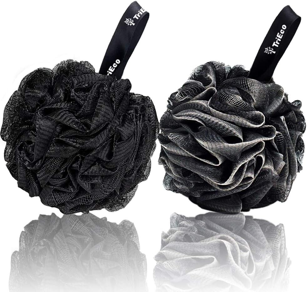 SHOWER BOUQUET Loofah-Charcoal Bath-Sponge-Color-Set XL-75g Extra Large 4 Pack Soft Mesh Black Loufa Puff - Exfoliating Body Scrubber for Women and M