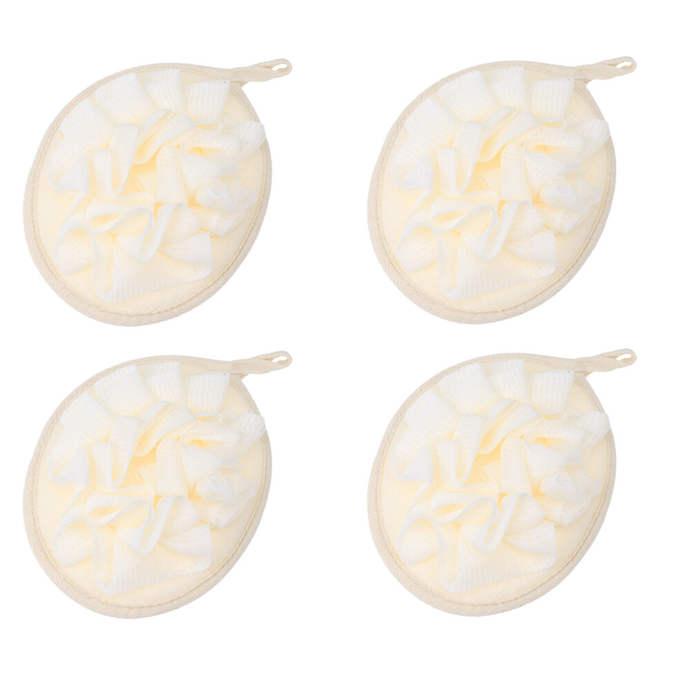 4Pcs Soft Beige Bath Puff Shower Sponge with Rope for Relaxing Bath