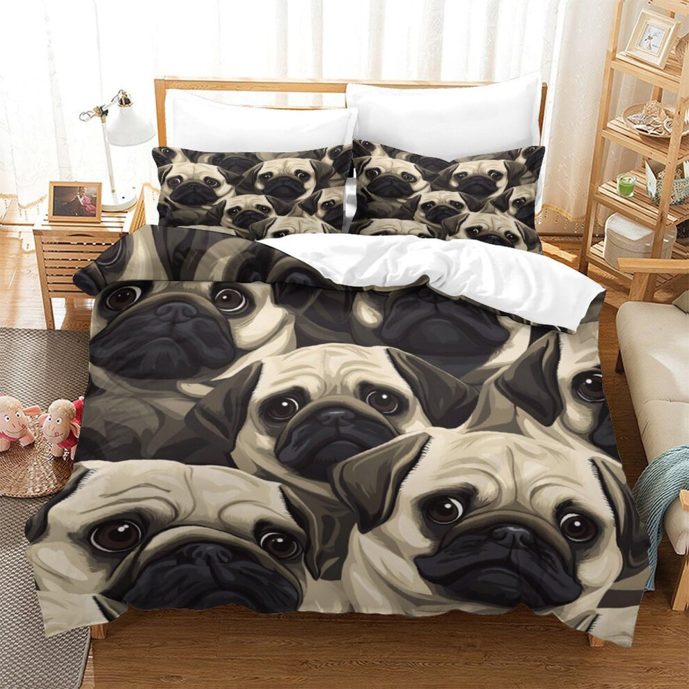 Pug Bedding Set 3D Duvet Cover with Pillowcases Microfiber Breathable Wrinkle Resistant Single 140x200cm