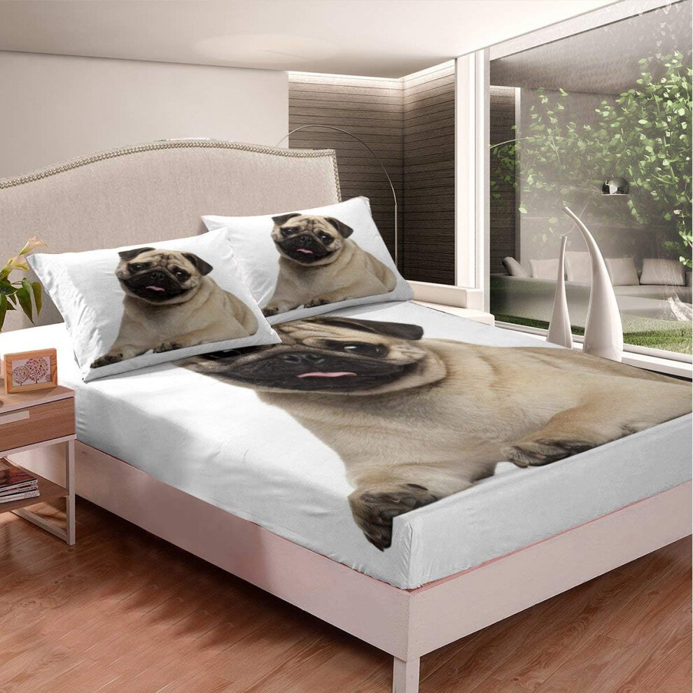 ((No Comforter)) Tbrand Children Dog Bedding Decor Set,Cute Pug Puppy Lovely Animal Pet Fitted Sheet & Pillow Sham Set,Decorative,Double Size for Kids