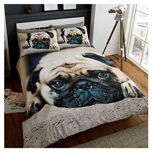 Gaveno Cavailia Animal Print 3D Sweet Pug Double Duvet Set, Premium Wildlife Bedding, 3 Piece Cotton Blend Reversible Bedlinen, Easy Care DuvetCover Bedset, 1 Quilt Cover + 2 Pillow Cases