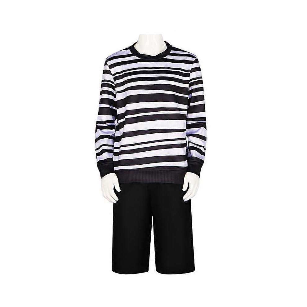 Pugsley Addams Costume Boys Wednesday Costume Black And White Striped Shirt NeckChildren3XL