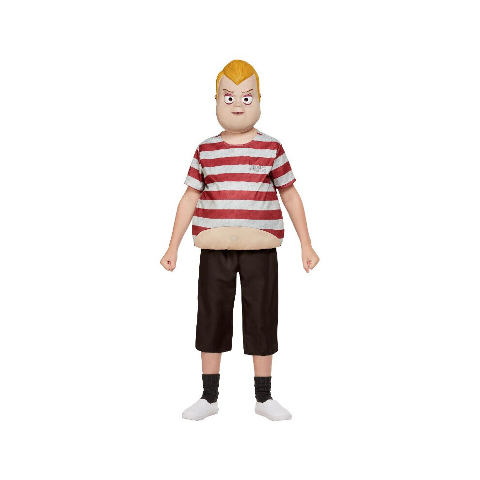 Smiffys The Addams Family Pugsley Costume for Children, Burgundy Officially Licensed Outfit with Top, Trousers, and Mask, Perfect for Group Halloween Themes