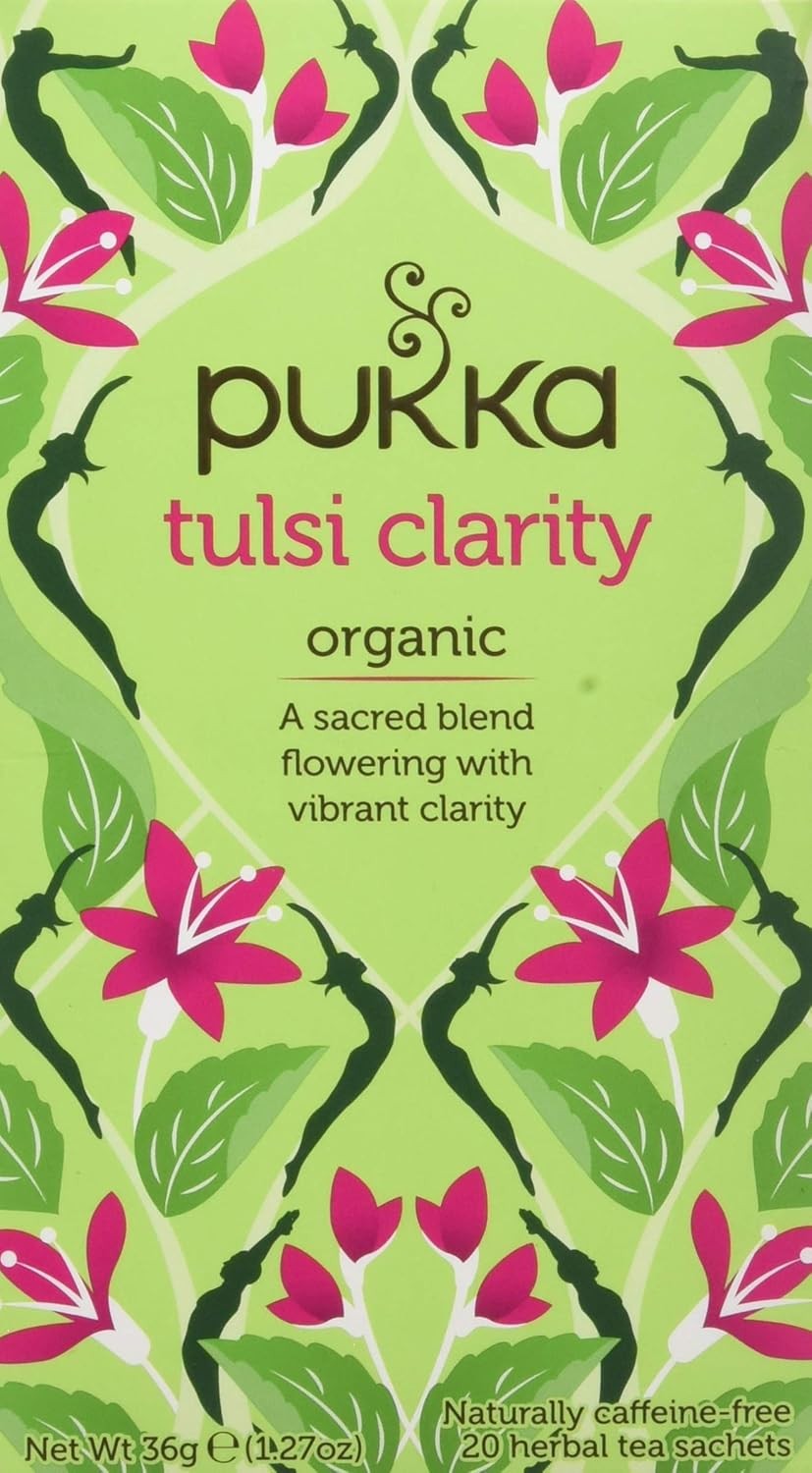 Pukka Herbs | Tulsi Clarity Organic Herbal Tea | Green, Purple and Lemon Tulsi| Perfect For Focusing | 4 packs | 80 Sachets