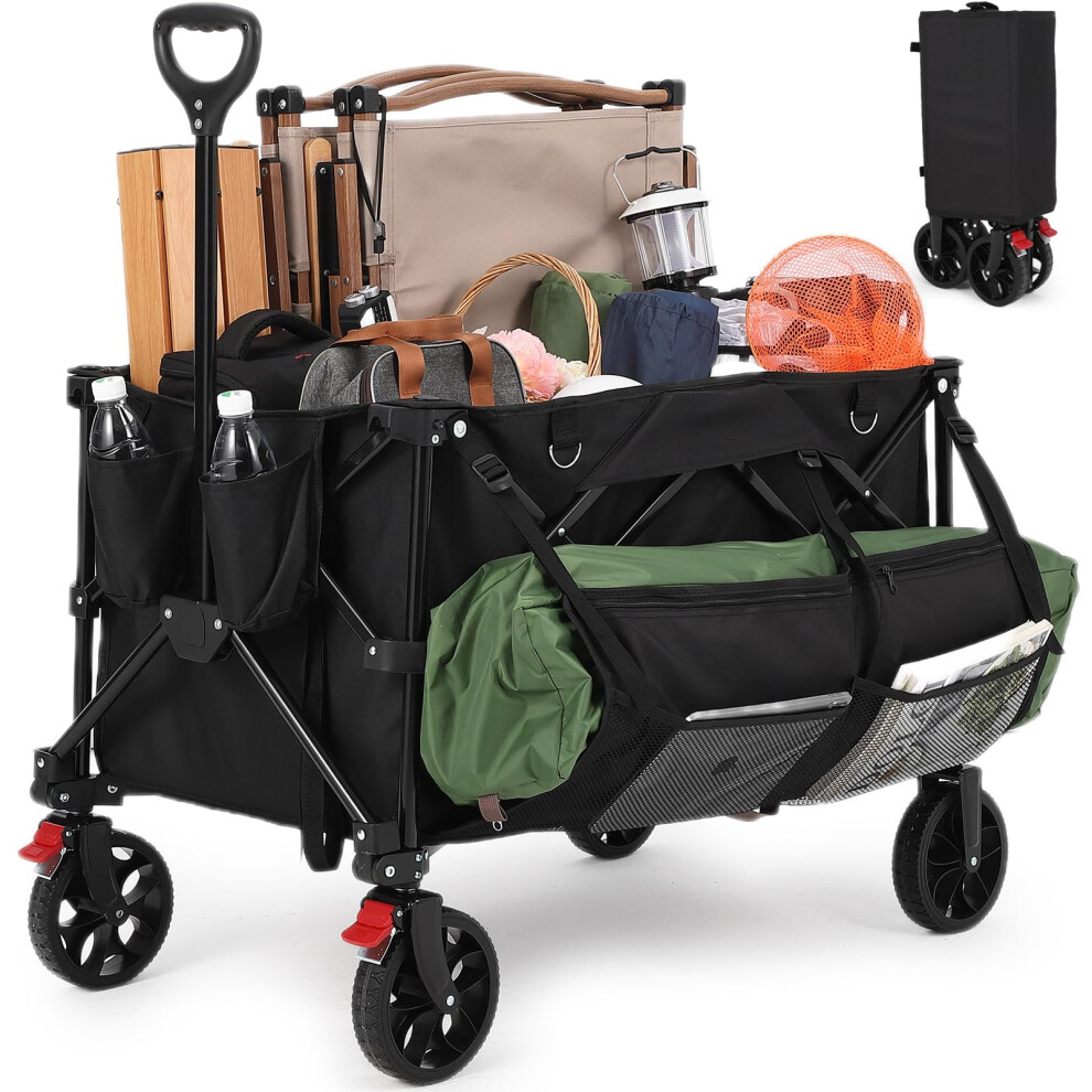 MUTUN Festival Trolley Heavy Duty, 150L Large Folding Wagon with Wide All-Terrain Wheels, 250KG Load Garden Cart Pull Along Hand Truck for Camping Beach Fishing Mud Proof, Black (17cm Tyres)