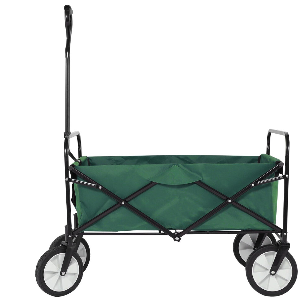 (Green) Foldable Pull Along Wagon Garden Trailer Hand Cart Utility Trolley