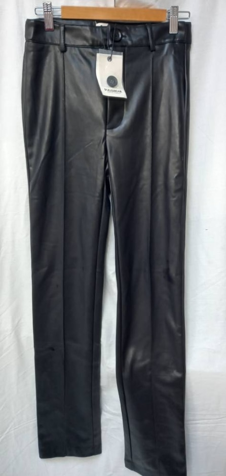 Bnwt Pull & Bear Leather Effect Trousers Black Size: S