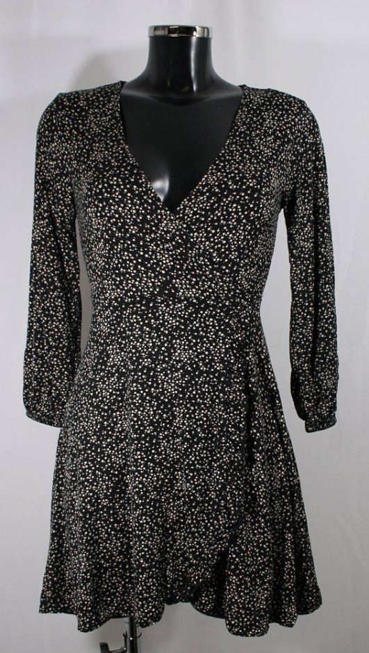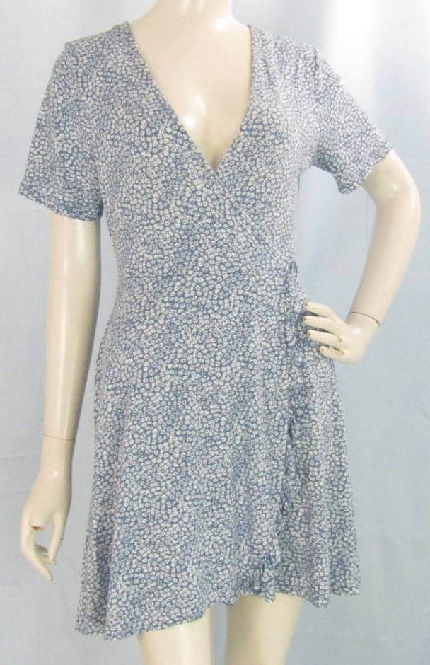Pull & Bear Wrap Floral Mini Dress Blue Size: L
