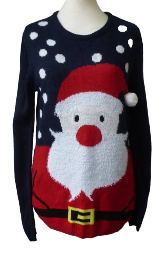 Pull & Bear Santa Clause Xmas Jumper Navy Blue Size: M