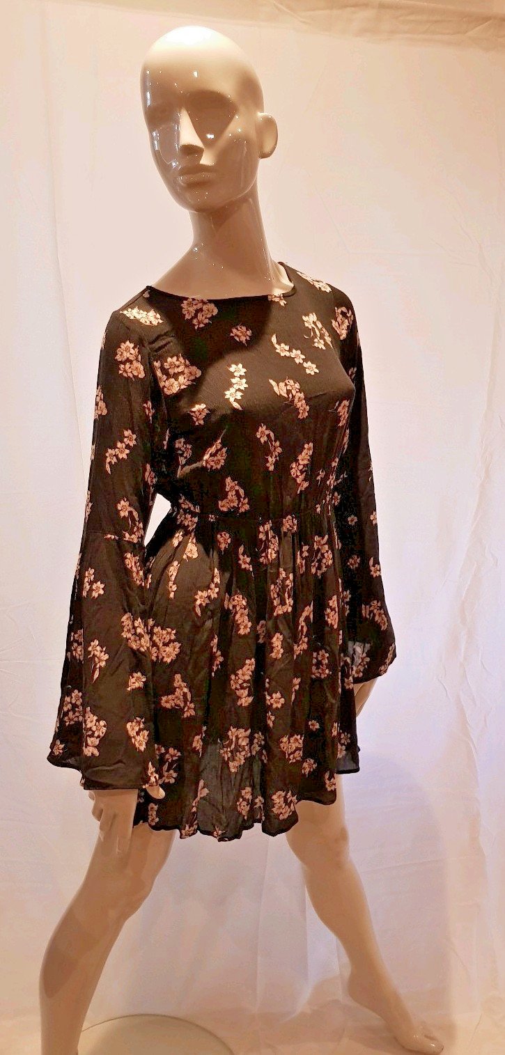 PULL AND BEAR GREY FLORAL SMOCK DRESS / TOP SIZE LARGE