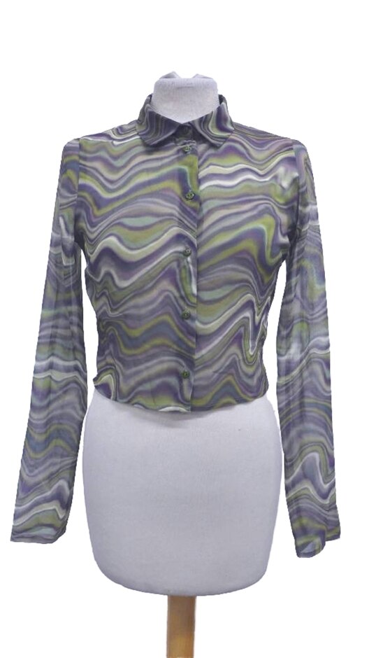 Pull & Bear Marbled Swirl Mesh Top Purple & Green Size: S