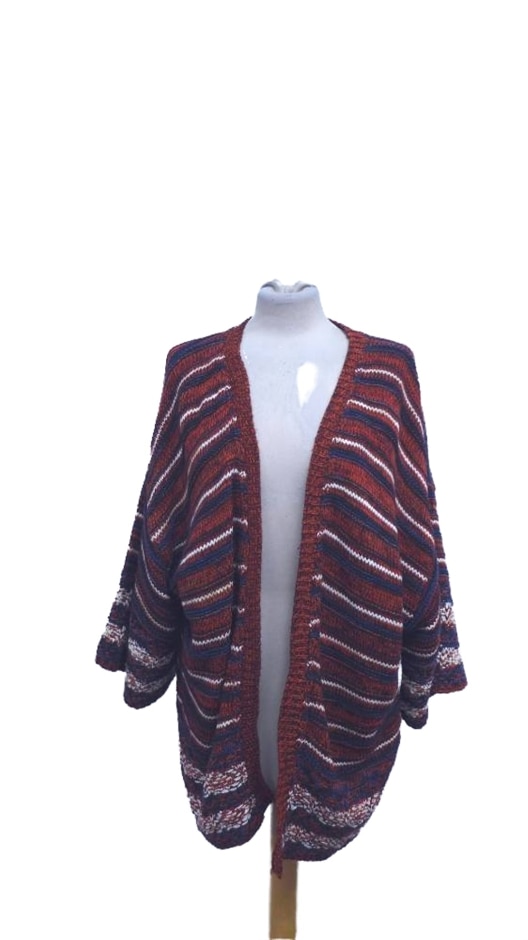 Pull&bear Striped Chunky Knit Cardigan Scarlet & Navy Size: Xl