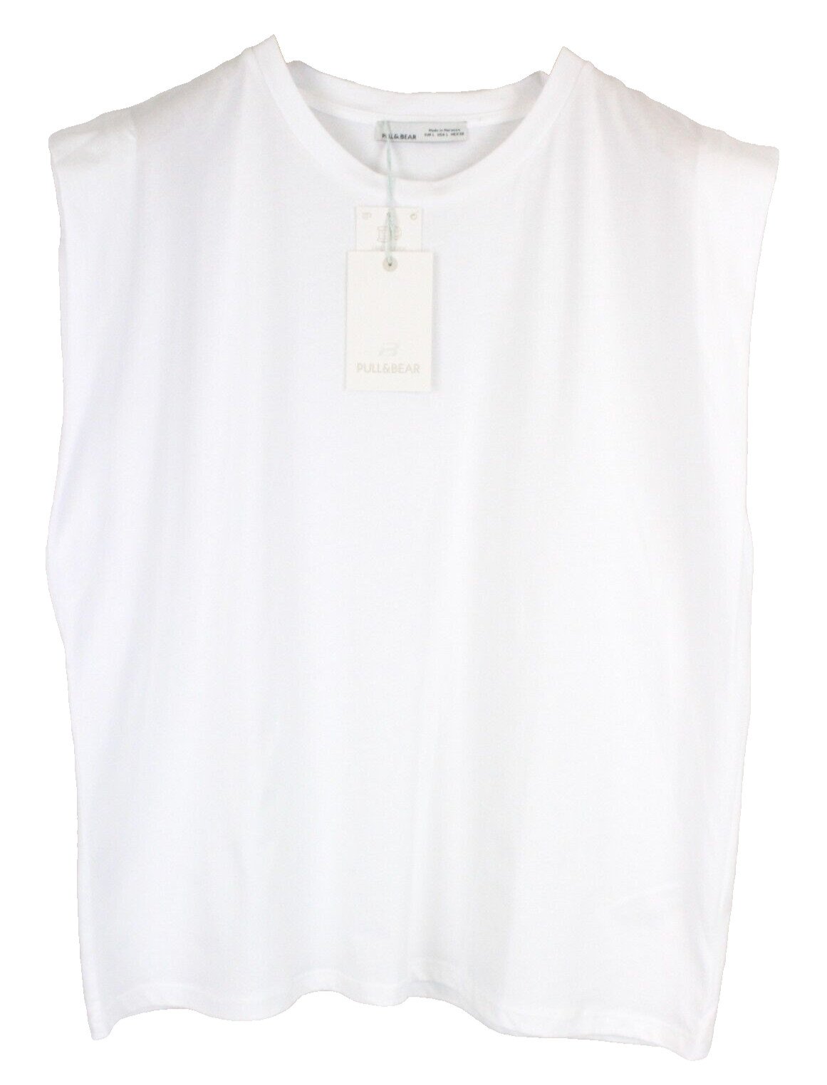 Pull & Bear Womens Top L White Sleeveless Round Neck Cotton Pull On *