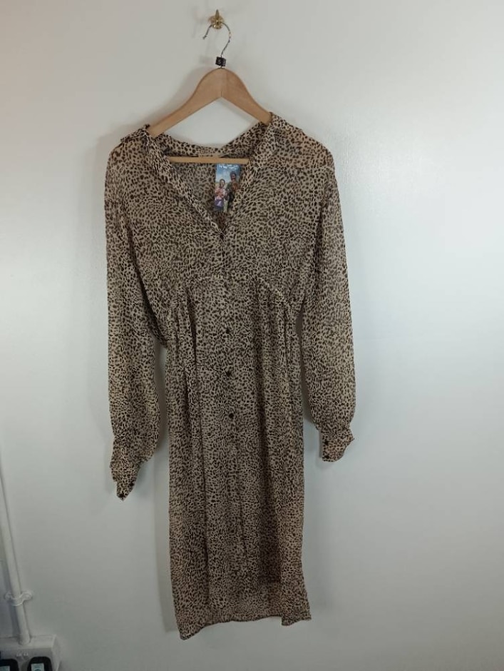 Pull & Bear Animal Print Dress Brown & Beige Size: S