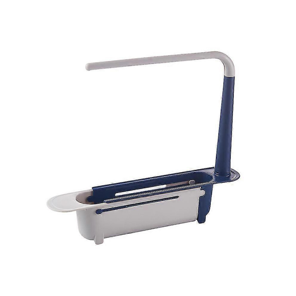 (Blue) Sink Telescopic Shelf Kitchen Supplies Multifunctional Pull-out Storage Rack Can Hang Sink Dishwashing Cloth Rack