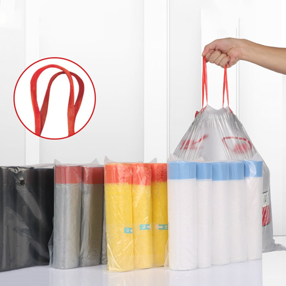 Hariumiu 5 Rolls Drawstring Trash Bags Tear-Proof Leak-Proof Plastic Easy Pull-Out Garbage Bags for Home Office Kitchen Bathroom