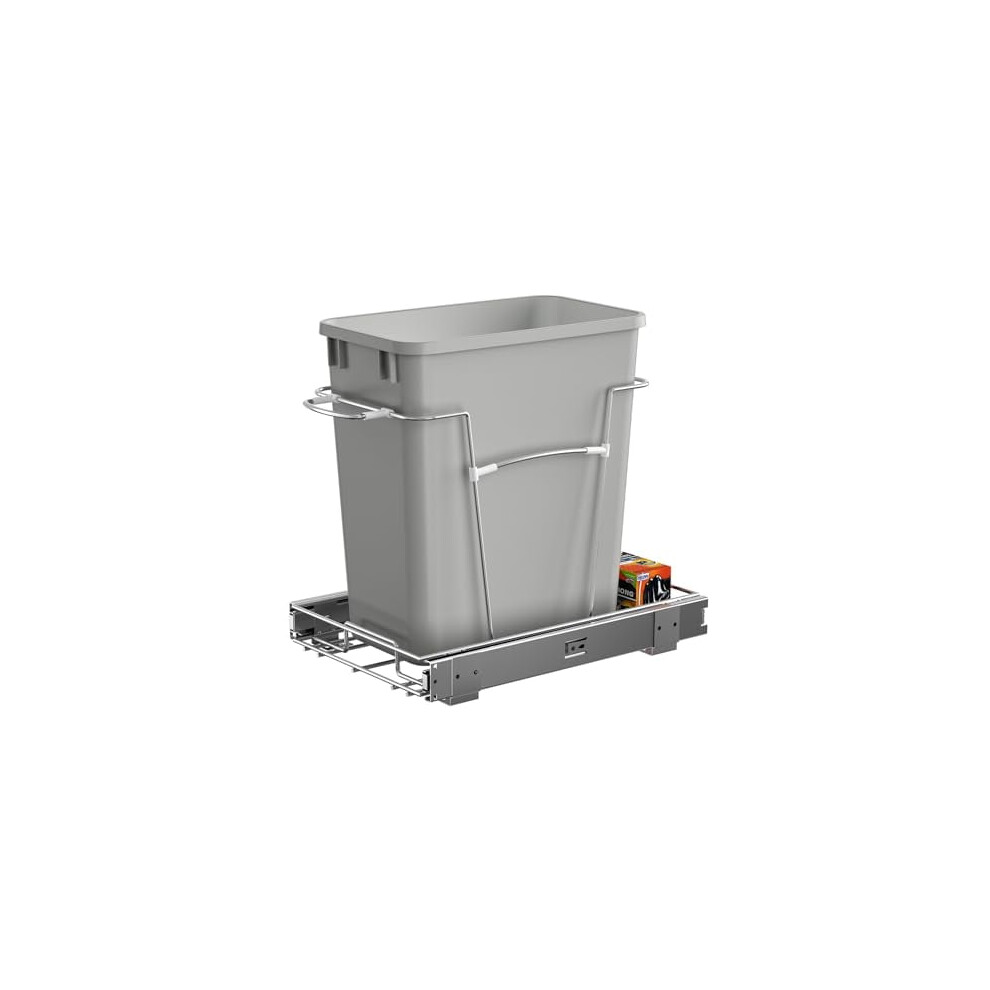 35 Qt Pull-Out Trash Can for Kitchen Cabinets, Fits 13" W x 18" D Openings, Full-Extension Slides, Heavy-Duty Steel, Silvery (Trash Can Not Included)