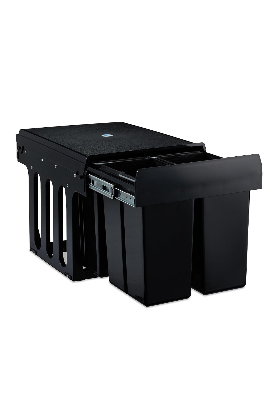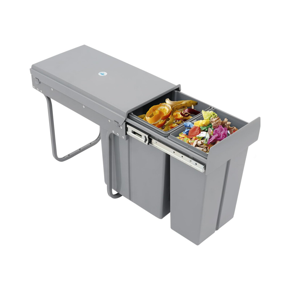 [en.casa] Built-in trash can Froland waste sorter Pull-out garbage collector 2 Removable compartments 48x34x35cm for kitchen Gray 2x15L