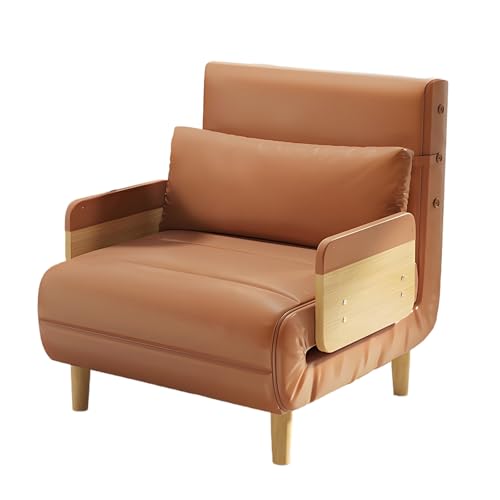 Multifunctional Sofa Sleeper Couch with Leather Sponge Pull Out Convertible Sleeper Sofa Bed Chair, 5-Position Adjustable, Solid Wood Armrests, no Assembly