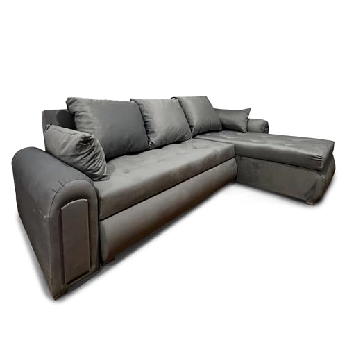 Furniture 786 Grey Sofa Bed - Comfy L Shape Pull Over Couches - Luxury Design Pull Out Sleeper Storage Sofa - Elegant Left Hand High Back Corner Settee for Indoors Bed Rooms and TV Lounge