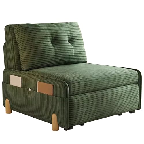 Modern Pull Out Couch Bed Sleeper Sofa Multifunctional Convertible Sleeper Chair 3-in-1 with Side Pockets Single Sofa Chair for Small Spaces Living Room Bedroom(Green,30.7in/78cm)