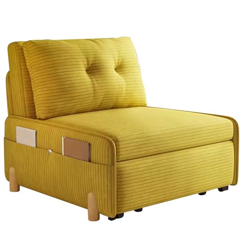Modern Pull Out Couch Bed Sleeper Sofa Multifunctional Convertible Sleeper Chair 3-in-1 with Side Pockets Single Sofa Chair for Small Spaces Living Room Bedroom(Yellow,24.4in/62cm)