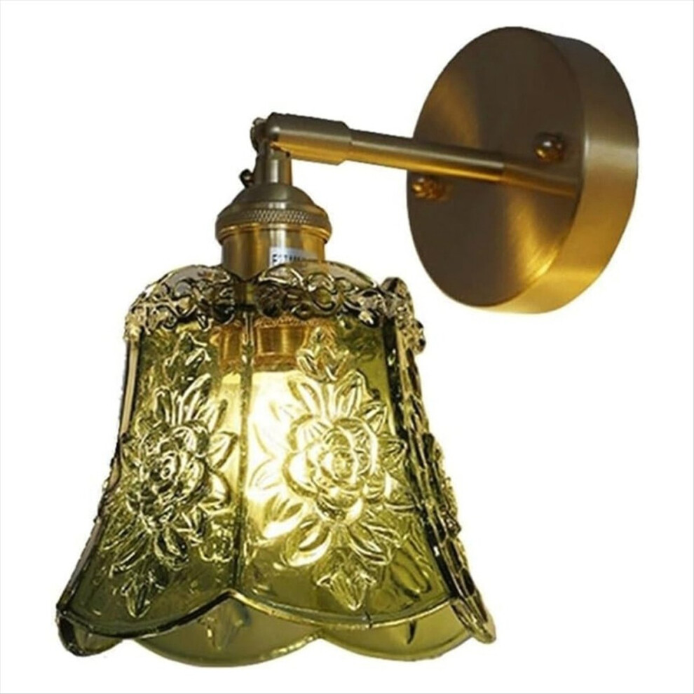 Koolenry Living Room Glass LED Wall Lights Pull Chain Switch Dining Room Kitchen Copper Vintage Style Up Down Rotate Bedside Lamp