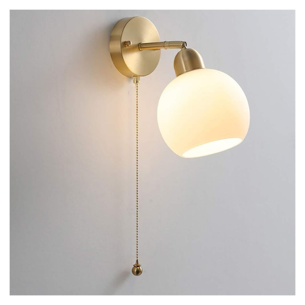 Akfldms Pull Chain Switch Glass LED Wall Lights Copper Vintage Style Up Down Rotate Living Dining Room Kitchen Bedside Lamp