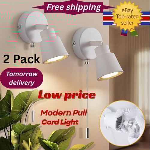 2 Pack White Wall Lights with Pull Cord Switch GU10 - Modern Pull Cord Light Sw