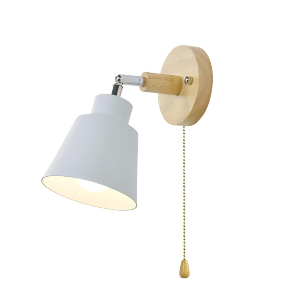 Indoor Wall Lights With Pull Cord Switch, Rotatable Wood Wall Lamp, Aluminum E27 Sconce, White Kids Bedside Light