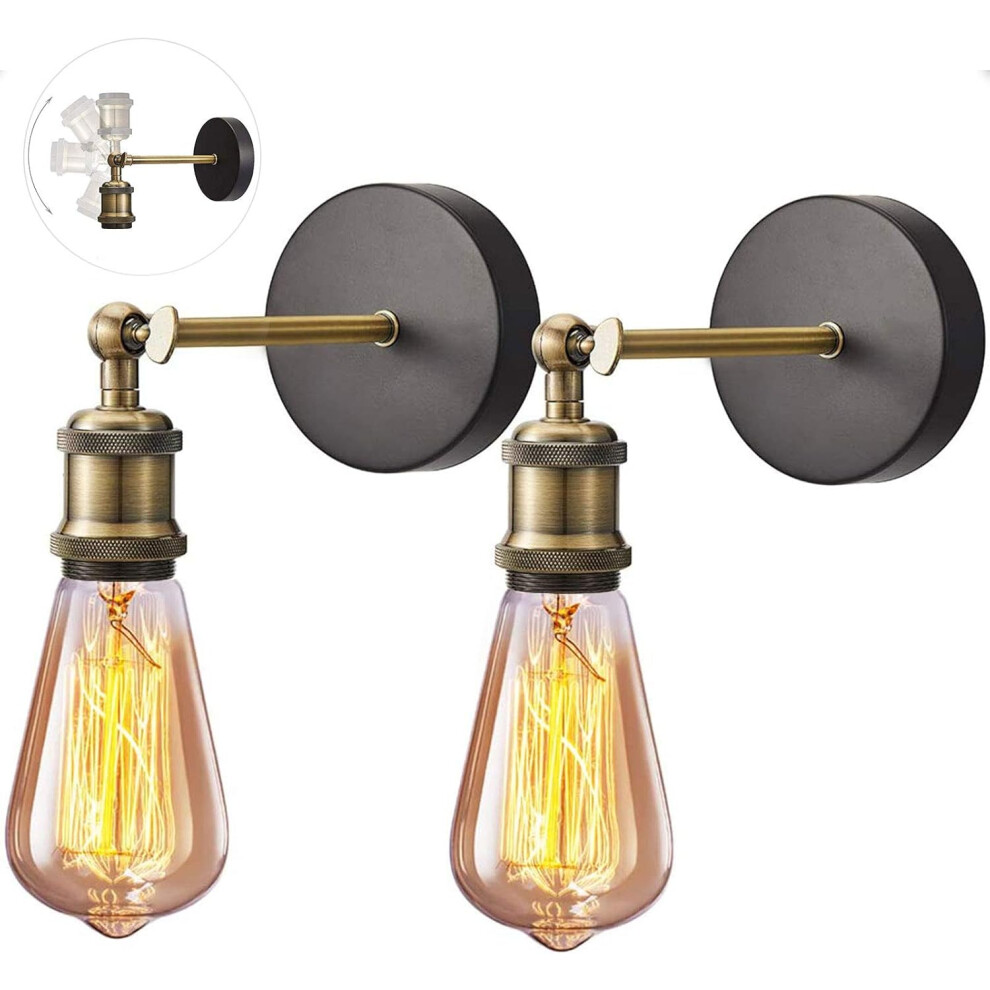 Lightess 2Pcs Wall Light with Switch Pull Cord Wall Lights E27 Socket, Retro Metal Iron Wall Sconces Industrial Wall Lamp for Bedroom Living Room