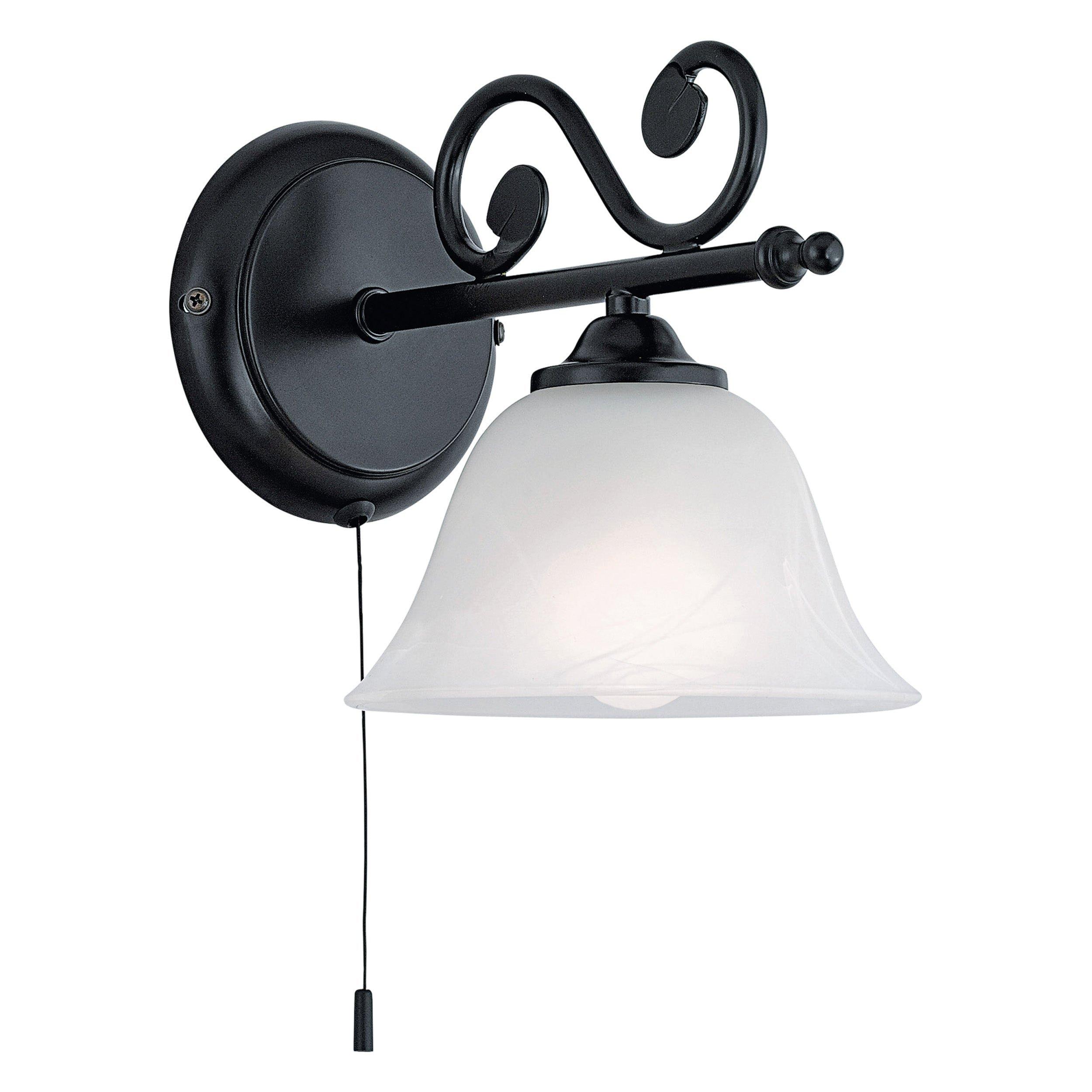 Wall Light Black Steel Shade White Glass Alabaster Pull Switch Bulb E14 1x40W