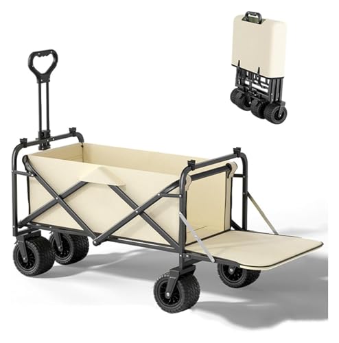 MEMEM Folding Camping TrolleyFolding Camping Wagon,Camping Trolley,All Terrain Utility Pull Camping Wagon,Garden Trolley Wagon,Portable Hand Cart,Perfect for Beach,Camping and Garden Beige,8 inches
