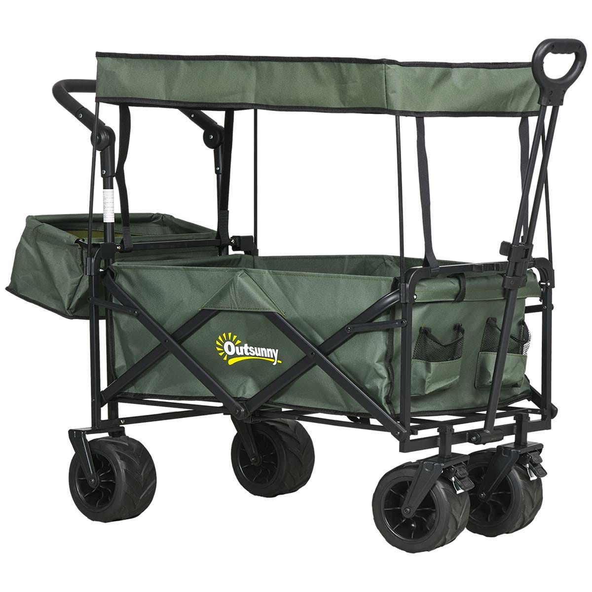 Outsunny Outdoor Push Pull Wagon Stroller Cart w/ Canopy Top Green, Green
