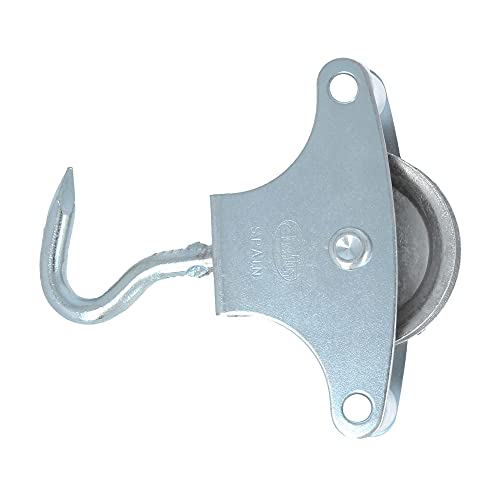 Amig - Pulley for Clothes Airer - with Hook - Steel - 39 mm Metal roll - Includes Clamping Screw and Guides - Secure Clothes line Pulley - Outdoor Clothes line Pulley