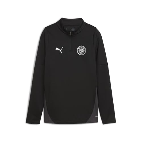 PUMA Manchester City FC Kids' Training 1/4 Zip Top Longsleeve Tee 25/26, Black (Black x Silver), 164