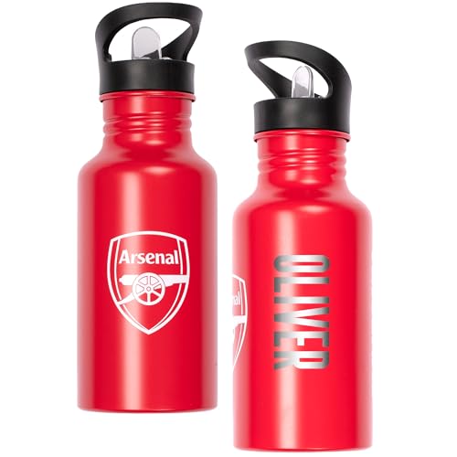 Arsenal FC Personalised Metal Water Bottle 500ml – Engraved Name School & Training Bottle – Gift for Boys & Football Fans