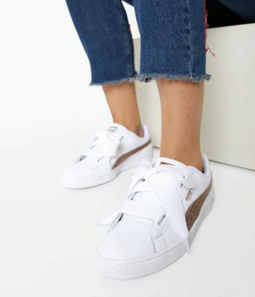 Puma Basket Heart AOP Womens White Trainers Leather (archived) - Size UK 3.5