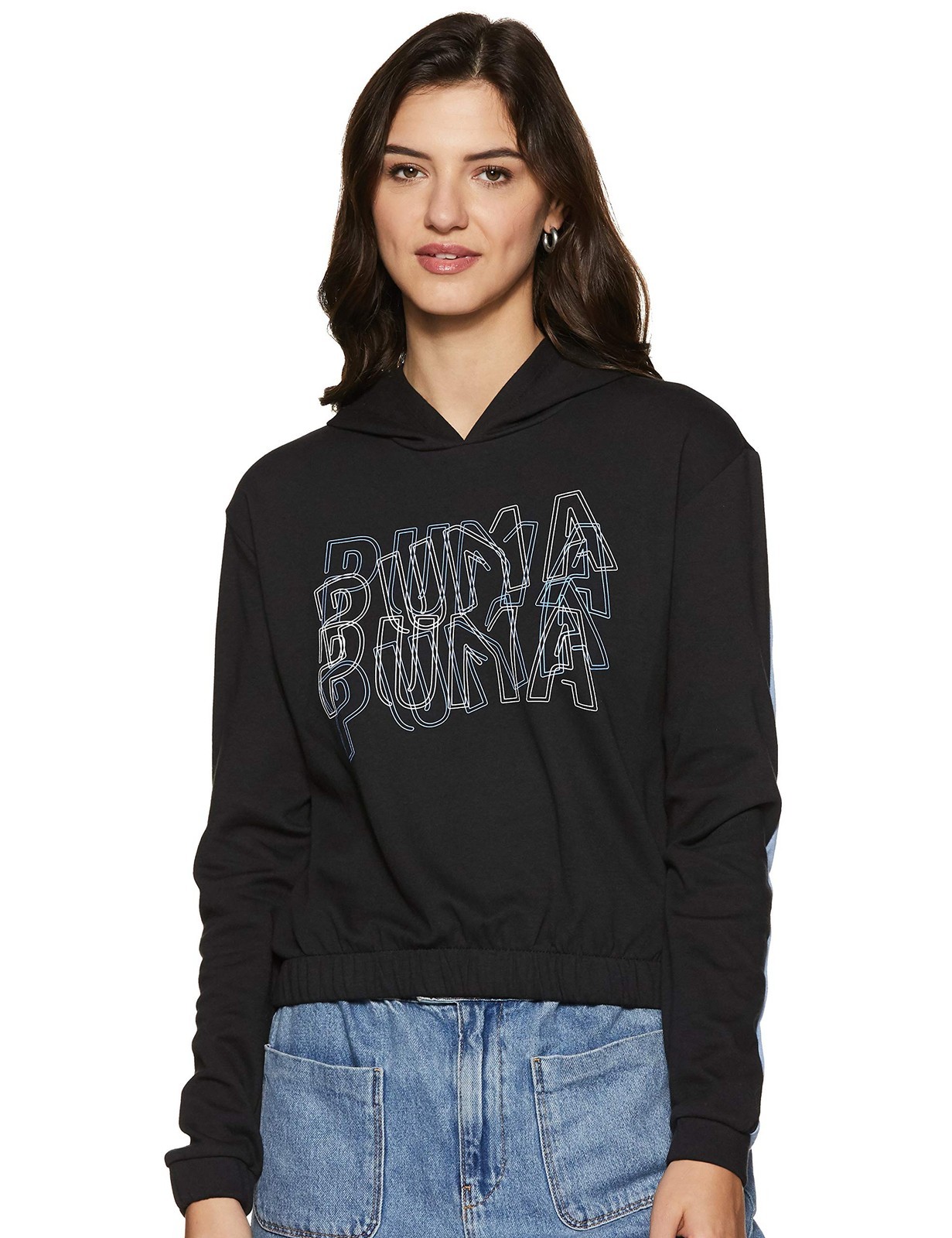 PUMA Women's Feel It Hoodie Pullover, Black-Blue Glitter, M